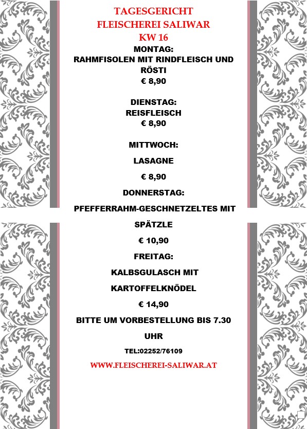 Jeden Tag ein neues, frisches Tagesgericht in der Fleischerei Saliwar in Kottingbrunn